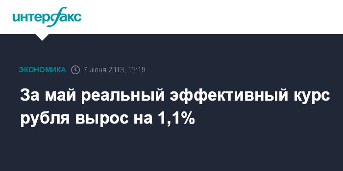 7 июня. FINMARKET.RU - За май 2013 года реальный эффективный курс рубля к иностранным валютам вырос на 1,1%, к доллару - также на 1,1%, к евро - на 1,2%. Об этом свидетельствуют опубликованные предварительные данные ЦБ РФ.