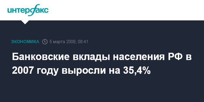 Банковские вклады населения РФ в 2007 году выросли на 35,4%