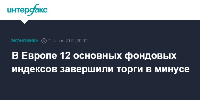 11 июня. FINMARKET.RU - По итогам вчерашних торгов фондовые индексы Европы изменились незначительно и разнонаправлено, при этом направление движения неоднократно менялось в ходе торговой сессии из-за противоречивой информации о состоянии экономики в различных странах мира, отмечает Bloomberg. Снижение по итогам торгов показали 12 из 18 основных фондовых индикаторов.