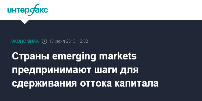 Лондон. 13 июня. INTERFAX.RU - Государства emerging markets - от Бразилии до Индии - предпринимают шаги для сдерживания оттока капитала на фоне растущих опасений, что развитые страны приближаются к началу завершения эры беспрецедентных вливаний ликвидности.