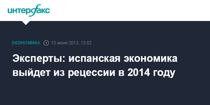 Мадрид. 13 июня. INTERFAX.RU - Испанская экономика выйдет из рецессии в 2014 году благодаря ослаблению мер бюджетной экономики, прогнозируют аналитики, опрошенные агентством Bloomberg.