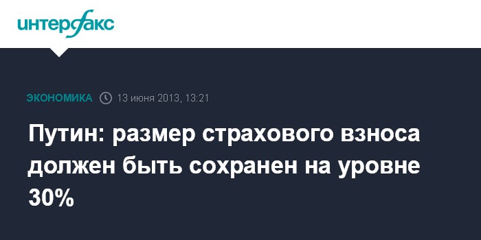 Москва. 13 июня. ИНТЕРФАКС-АФИ - Президент России Владимир Путин поставил точку в вопросе о размере страхового взноса.