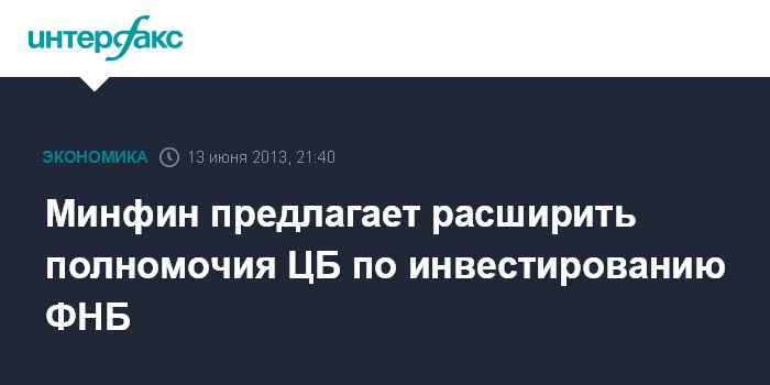 Москва. 13 июня. INTERFAX.RU - Министерство финансов РФ в качестве альтернативы созданию Росфинагентства предлагает расширить полномочия ЦБ по инвестированию средств Фонда национального благосостояния с привлечением профессиональных консультантов, заявил глава Минфина Антон Силуанов.