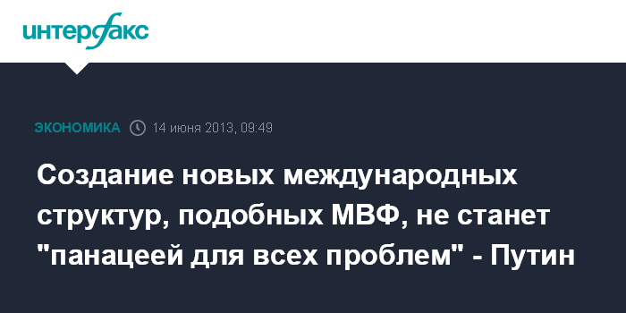 Создание новых международных структур, подобных МВФ, не станет "панацеей для всех проблем" - Путин