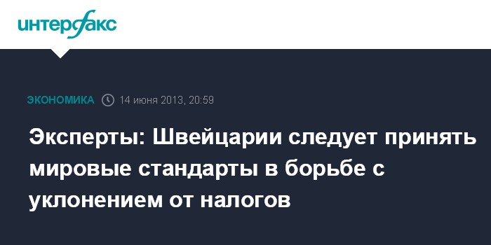 Берн. 14 июня. INTERFAX.RU - Швейцарии следует присоединиться к международным усилиям в плане борьбы с уклонением от уплаты налогов, позволив банкам делиться данными о счетах клиентов, считает созданная министерством финансов страны экспертная группа, в которую вошли научные деятели и представители правительства, сообщает агентство Bloomberg.