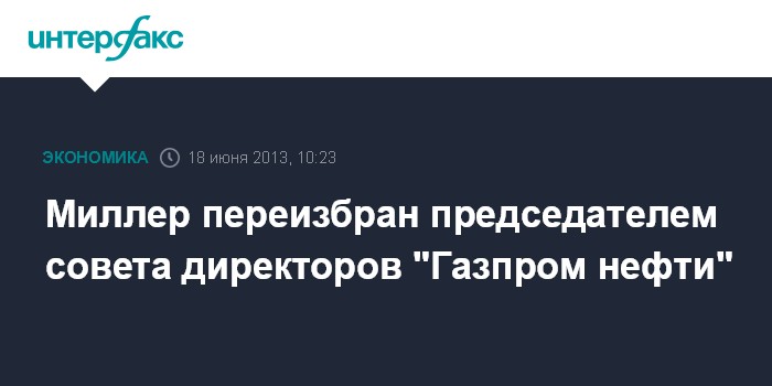 Москва. 18 июня. INTERFAX.RU - Новый состав совета директоров "Газпром нефти" избрал председателем совета главу "Газпрома" Алексея Миллера.