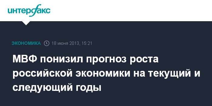 18 июня. FINMARKET.RU - Международный валютный фонд (МВФ) понизил прогноз роста ВВП России в 2013 году до 2,5% с 3,4%, прогнозировавшихся им в апреле. Такая оценка роста российской экономики содержится в заявлении миссии фонда. Миссия во главе с Антонио Спилимберго провела в Москве консультации.
