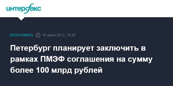 Петербург планирует заключить в рамках ПМЭФ соглашения на сумму более 100 млрд рублей