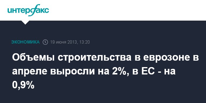 19 июня. FINMARKET.RU - Объем строительства в еврозоне в апреле 2013 года вырос на 2% по сравнению с предыдущим месяцем, когда снижение составляло 1,8%, свидетельствуют данные Статистического управления Европейского союза (Евростата). Падение объемов строительства относительно апреля 2012 года составило 6,6%.