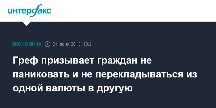 Санкт-Петербург. 21 июня. INTERFAX.RU - Глава Сбербанка Герман Греф призвал неквалифицированных инвесторов не паниковать и не перекладывать свои средства из одной валюты в другую, чтобы не потерять сбережения. Об этом он сообщил журналистам в кулуарах делового завтрака Сбербанка в пятницу в рамках ПМЭФ.