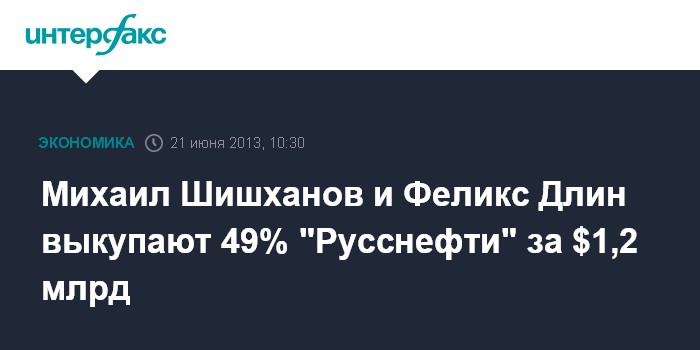 Михаил Шишханов и Феликс Длин выкупают 49% "Русснефти" за $1,2 млрд
