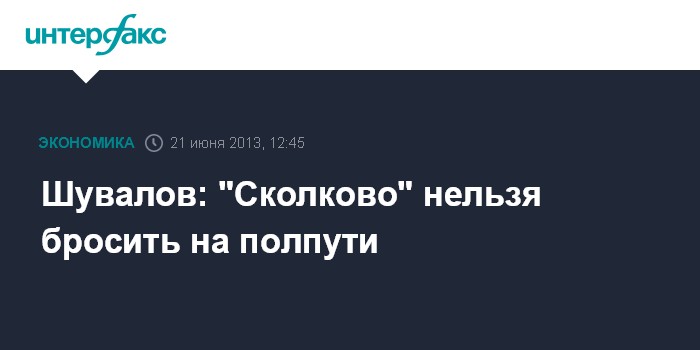 Санкт-Петербург. 21 июня. INTERFAX.RU - Проект "Сколково" необходимо довести до конца, а выявленные нарушения необходимо устранить, в том числе привлечь виновных к ответственности при необходимости, заявил первый вице-премьер Игорь Шувалов.