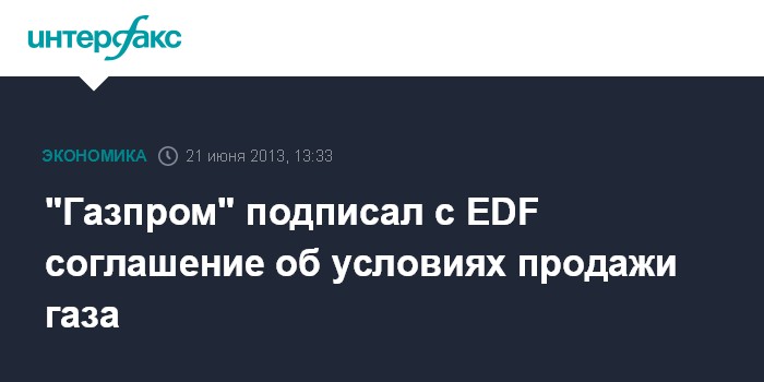 Санкт-Петербург. 21 июня. INTERFAX.RU - "Газпром" подписал с EDF соглашение об основных условиях продажи газа, передал корреспондент "Интерфакса" с церемонии подписания.