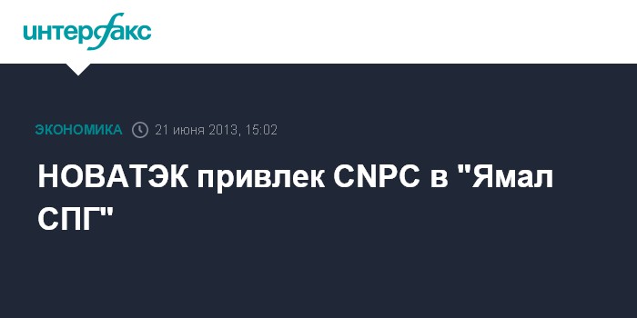 Санкт-Петербург. 21 июня. INTERFAX.RU - "НОВАТЭК" и китайская CNPC в пятницу в рамках Петербургского международного экономического форума подписали соглашение о сотрудничестве в рамках проекта "Ямал СПГ", передал корреспондент "Интерфакса".