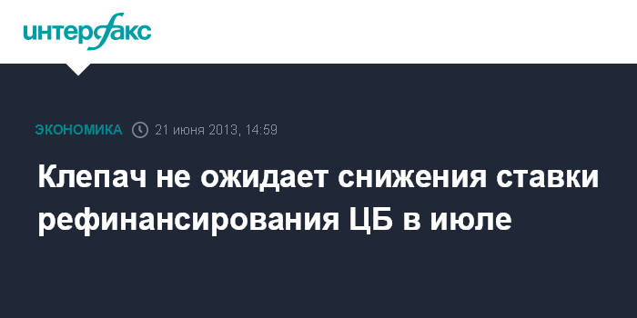 Санкт-Петербург. 21 июня. INTERFAX.RU - Замглавы Минэкономразвития РФ Андрей Клепач считает, что ЦБ в июле не будет снижать базовые процентные ставки, полагает, что это может произойти ближе к осени.