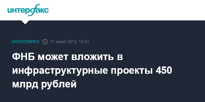 ФНБ может вложить в инфраструктурные проекты 450 млрд рублей