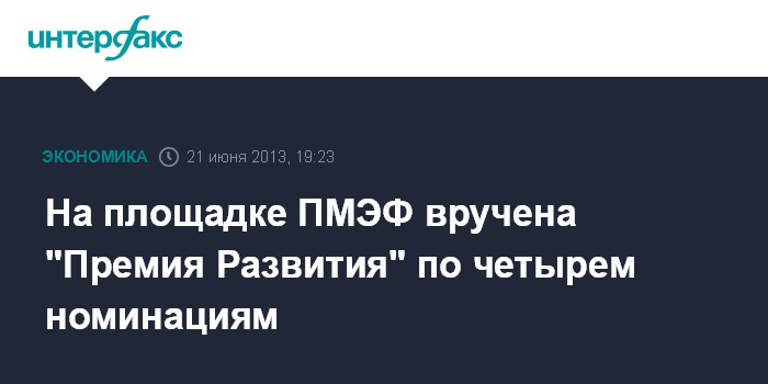 На площадке ПМЭФ вручена "Премия Развития" по четырем номинациям