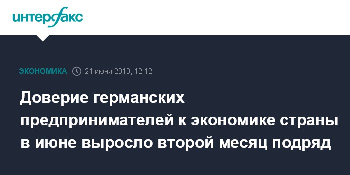 24 июня. FINMARKET.RU - В июне 2013 года индекс доверия германских предпринимателей к экономике страны вырос второй месяц подряд - до 105,9 пункта со 105,7 пункта в мае, свидетельствуют данные исследовательского института IFO.