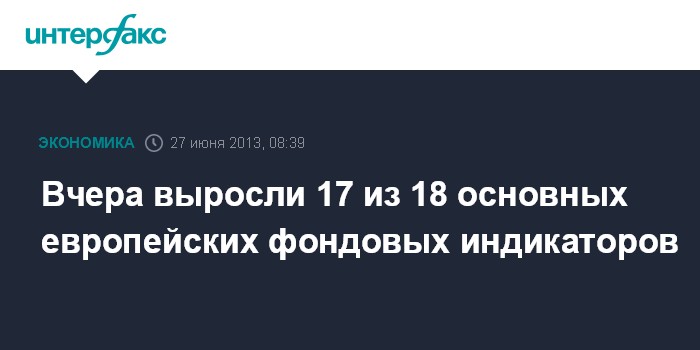 Семнадцать из восемнадцати основных фондовых индекса стран Западной Европы продемонстрировали повышение по итогам торгов, исключением стал лишь греческий рынок.