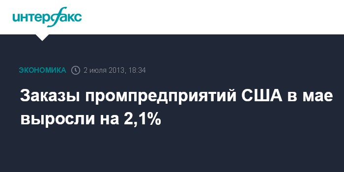 В мае 2013 года заказы промышленных предприятий США увеличились на 2,1% по сравнению с предыдущим месяцем, свидетельствуют данные министерства торговли.