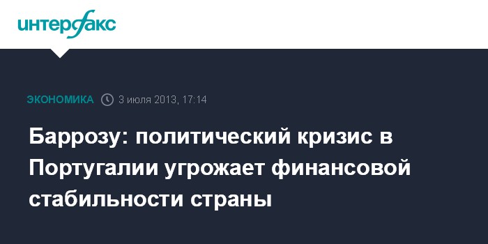 Брюссель. 3 июля. INTERFAX.RU - Политический кризис в Португалии угрожает финансовой стабильности страны, ради достижения которой правительство в последние два года проводило реформы и реализовывало меры жесткой экономии, заявил глава Европейской комиссии (ЕК) Жозе Мануэл Баррозу.