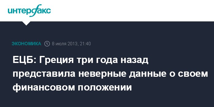ЕЦБ: Греция три года назад представила неверные данные о своем финансовом положении