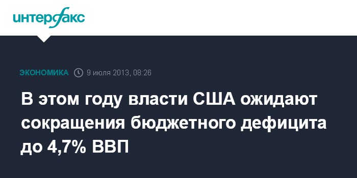 В этом году власти США ожидают сокращения бюджетного дефицита до 4,7% ВВП