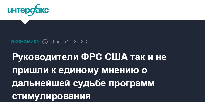 11 июля. FINMARKET.RU - Многие руководители Федеральной резервной системы (ФРС) США хотели бы свернуть программы стимулирования до середины 2014 года - срока, заявленного главой ФРС Беном Бернанке на пресс-конференции в июле. Об этом свидетельствует протокол заседания Федерального комитета по открытым рынкам (FOMC) американского Центробанка от 18-19 июня.