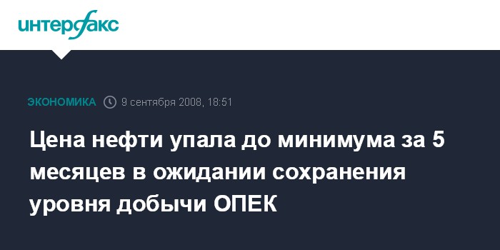 Москва. 9 сентября. INTERFAX.RU - Стоимость нефти упала во вторник до минимального уровня за последние пять месяцев в ожидании сохранении уровня добычи ОПЕК на текущем уровне, сообщило агентство Bloomberg.