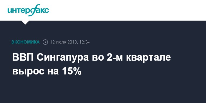 ВВП Сингапура во 2-м квартале вырос на 15%