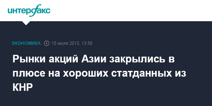 Рынки акций Азии закрылись в плюсе на хороших статданных из КНР