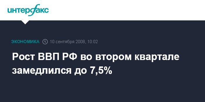 Рост ВВП РФ во втором квартале замедлился до 7,5%