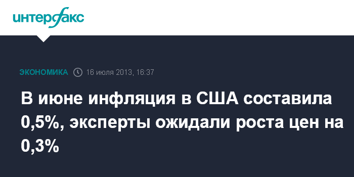 16 июля. FINMARKET.RU - В июне 2013 года потребительские цены (индекс CPI) в США выросли на 0,5% по сравнению с предыдущим месяцем, когда их рост составил 0,1%, свидетельствуют данные министерства труда страны. Рост цен в июне в США был максимальным за 4 месяца.