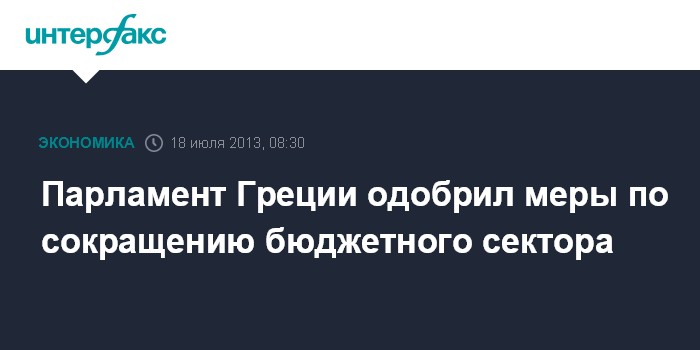 Брюссель. 17 июля. INTERFAX.RU - Парламент Греции одобрил в ночь на четверг очередной пакет мер, включающий в себя шаги по сокращению числа бюджетников и зарплат в бюджетном секторе, что позволит Афинам выполнить взятые на себя перед кредиторами обязательства.