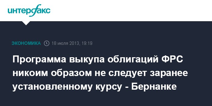 Программа выкупа облигаций ФРС никоим образом не следует заранее установленному курсу - Бернанке