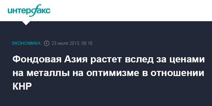 Фондовая Азия растет вслед за ценами на металлы на оптимизме в отношении КНР