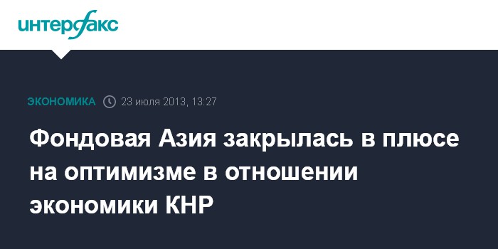 Фондовая Азия закрылась в плюсе на оптимизме в отношении экономики КНР