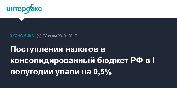 Поступления налогов в консолидированный бюджет РФ в I полугодии упали на 0,5%