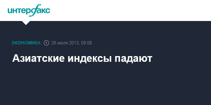26 июля. FINMARKET.RU - Фондовые индексы Азиатско-Тихоокеанского региона (АТР) падают после выхода смешанных данных об экономике США, которые осложняют оценку планов Федеральной резервной системы по сокращению стимулирования. Фондовая Азия торгуется в минусе трети день подряд, передает агентство Bloomberg.