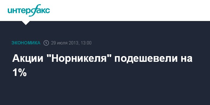 Москва. 29 июля. INTERFAX.RU - Акции "Норникеля" днем в понедельник подешевели на 1% после публикации производственного отчета за первое полугодие.