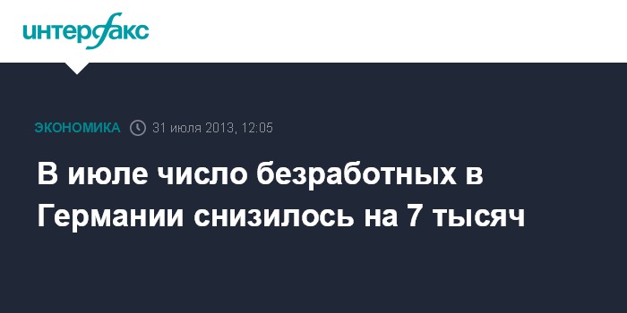 Количество безработных в Германии снизилось в июле 2013 года на 7 тыс. - до 2,94 млн человек.