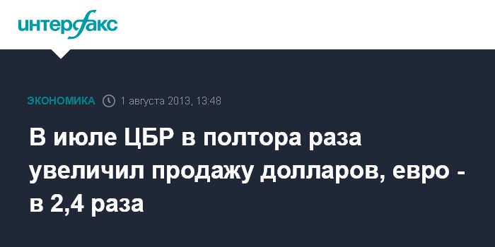В июле ЦБР в полтора раза увеличил продажу долларов, евро - в 2,4 раза