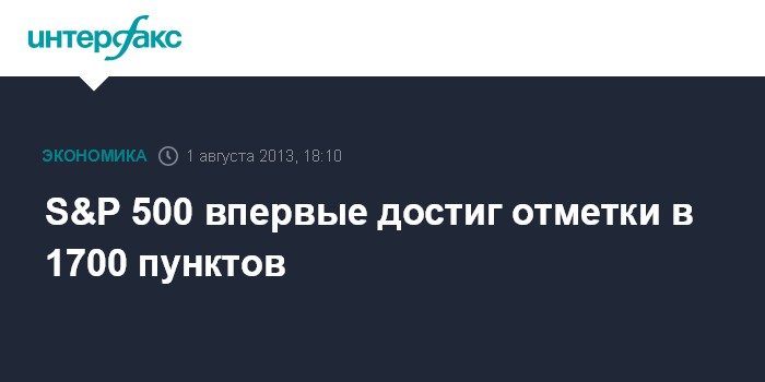 S&P 500 впервые достиг отметки в 1700 пунктов