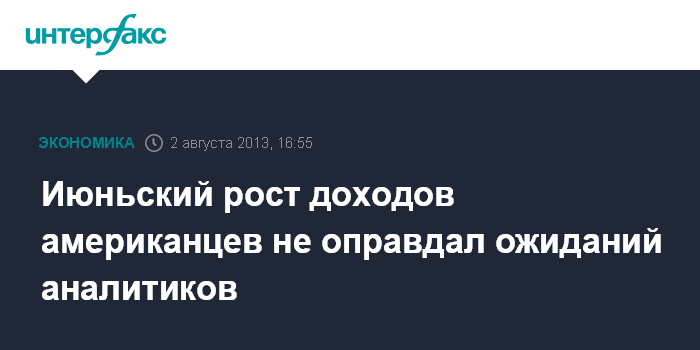 Июньский рост доходов американцев не оправдал ожиданий аналитиков