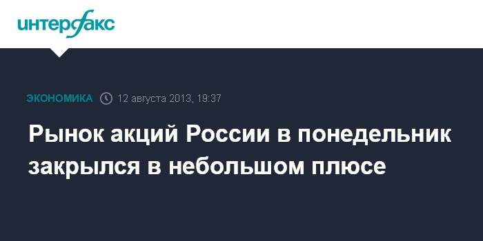 Москва. 12 августа. INTERFAX.RU - Рынок акций России, практически всю торговую сессию понедельника находившийся в рамках бокового диапазона, по итогам торгов смог закрыться в небольшом плюсе на фоне стабилизации ситуации на мировых рынках капитала.