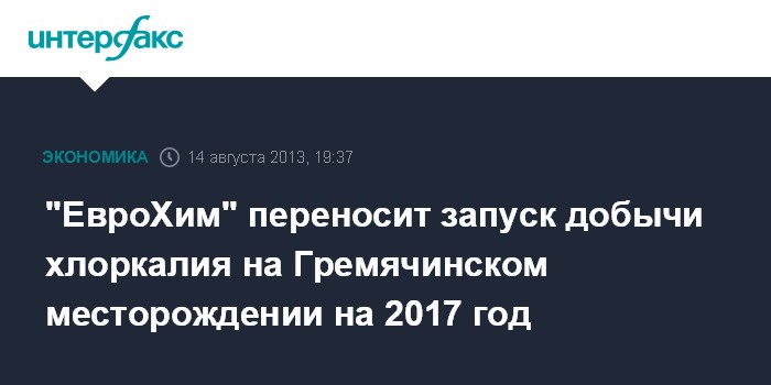 "ЕвроХим" переносит запуск добычи хлоркалия на Гремячинском месторождении на 2017 год