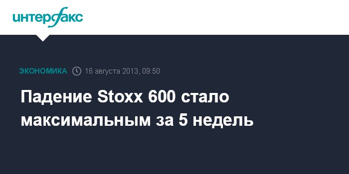 Сводный индекс крупнейших предприятий Европы Stoxx Europe 600 после 5 дней роста упал на 1,06% - до 305,34 пункта. Это максимальное снижение с 5 июля. Активность торговли находилась на очень низком уровне, объем сделок был на 31% меньше среднедневного показателя за последние 100 дней.