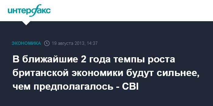 19 августа. FINMARKET.RU - В ближайшие два года темпы роста британской экономики, вероятно, будут сильнее, чем предполагалось изначально, говорится в новом докладе Конфедерации британской промышленности (CBI), представляющей интересы 240 тыс. британских предприятий.