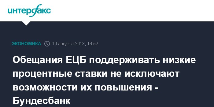 Обещания ЕЦБ поддерживать низкие процентные ставки не исключают возможности их повышения - Бундесбанк