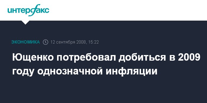 Москва. 12 сентября. INTERFAX.RU - Президент Украины Виктор Ющенко требует обеспечить в 2009 году однозначную инфляцию.